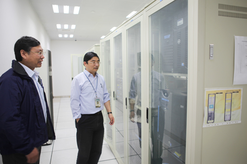 许副主任与复旦大学信息化办公室主任宓咏教授参观机房
