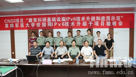 7月9日下午,由中国教育科研网西北中心李卫主任为组长,兰州大学、新疆大学、西北工业大学和长安大学网络中心主任等,组成的国家CNGI试商用“教育科研基础设施IPv6技术升级和应用示范”项目验收组一行6人,莅临学校网络中心,对我校校园网IPv6技术升级子项目的建设与应用情况进行现场检查验收,训练部李维国副部长、网络中心高东怀主任与主要技术人员陪同检查。CNGI项目(China's Next Generation Internet)是我国下一代互联网示范工程项目,其主要采用IPv6技术,IPv4技术是现有互联网所采用的技术。